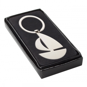 Artikel-Nr: AND806323Metall-Schlüsselanhänger in Form eines Segelbootes. Einzeln in schwarzer Geschenkbox.