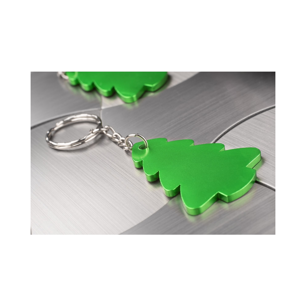 Artikel-Nr: ARD17904-05Schlüsselanhänger aus Metall in Form eines Baumes in Grün. Ideal für Waldliebhaber. Aufgehängt an einer silberfarbenen Kette.