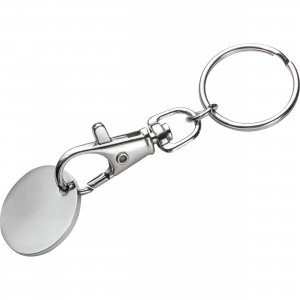 Artikel-Nr: EAG047704Schlüsselanhänger mit einem durch einen Karabinerhaken abnehmbaren Einkaufswagenchip. Die eine Seite des Chips ist farbig. Ihre Werbung gravieren wir auf die silberne Seite des Chips.