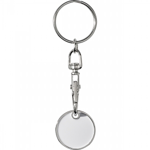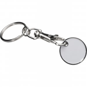 Artikel-Nr: EAG047706Schlüsselanhänger mit einem durch einen Karabinerhaken abnehmbaren Einkaufswagenchip. Die eine Seite des Chips ist farbig. Ihre Werbung gravieren wir auf die silberne Seite des Chips.