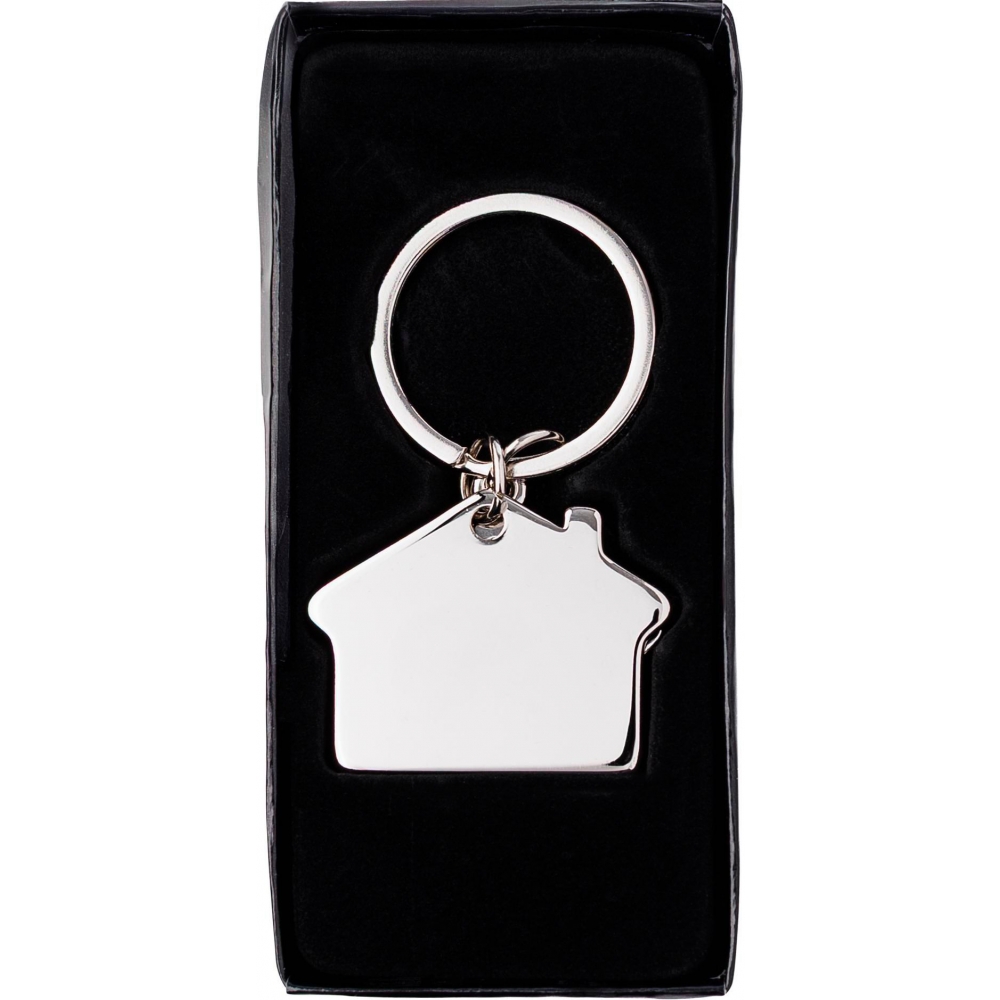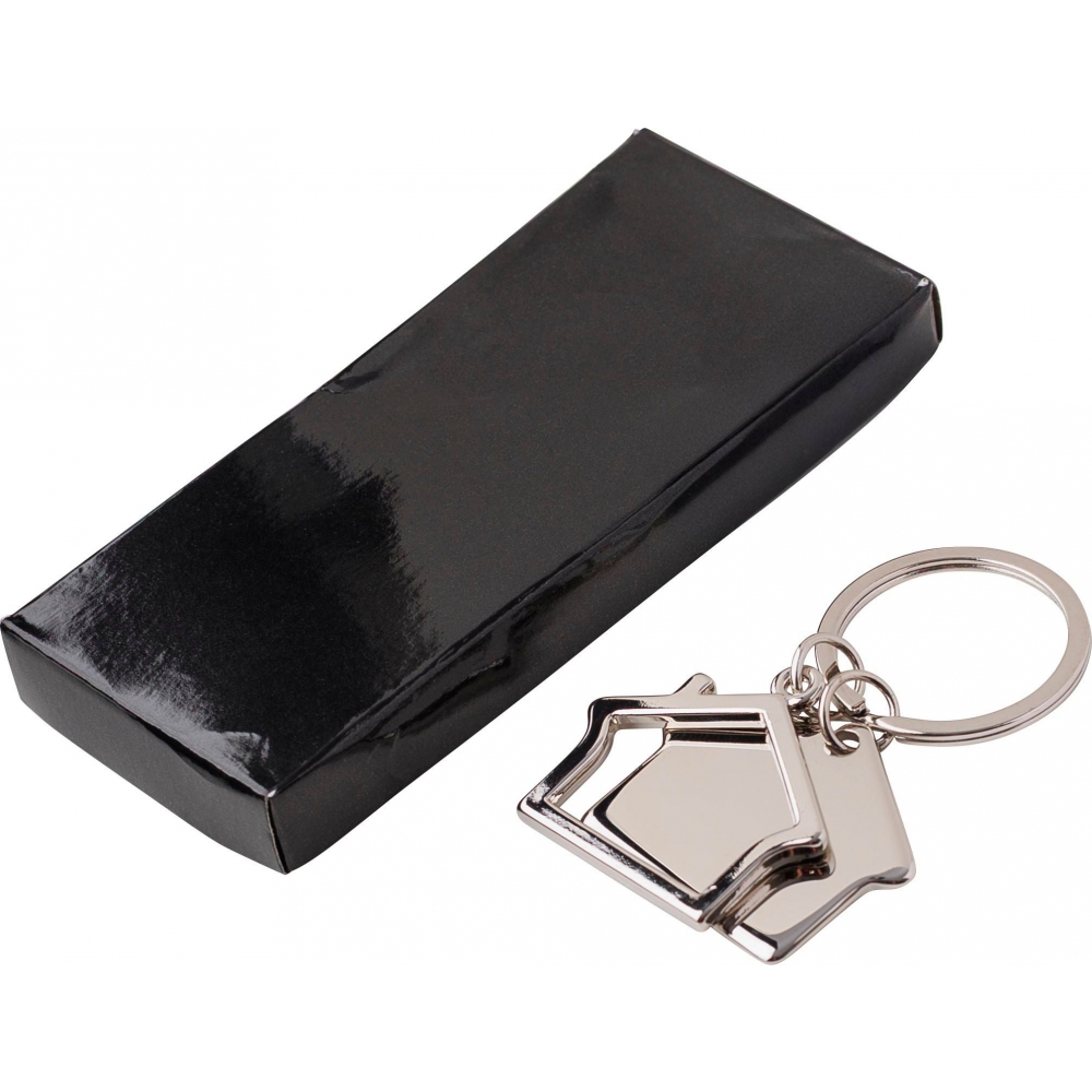 Artikel-Nr: GIV87420322-teiliger Schlüsselanhänger aus Zink-Aluminium in Form eines Hauses, verpackt in einer Geschenkbox.