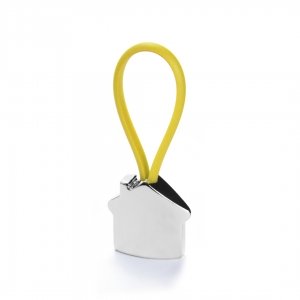 Artikel-Nr: KTO14610005000Metall-Schlüsselanhänger mit elegantem Haus-Design in 3D. Mit Gummiband in verschiedenen lebendigen Farben für die Befestigung der Schlüssel.