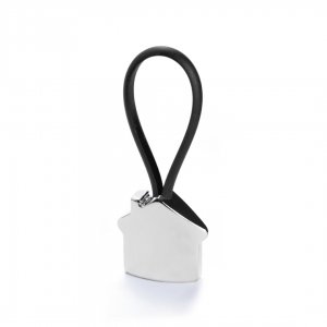 Artikel-Nr: KTO14610002000Metall-Schlüsselanhänger mit elegantem Haus-Design in 3D. Mit Gummiband in verschiedenen lebendigen Farben für die Befestigung der Schlüssel.