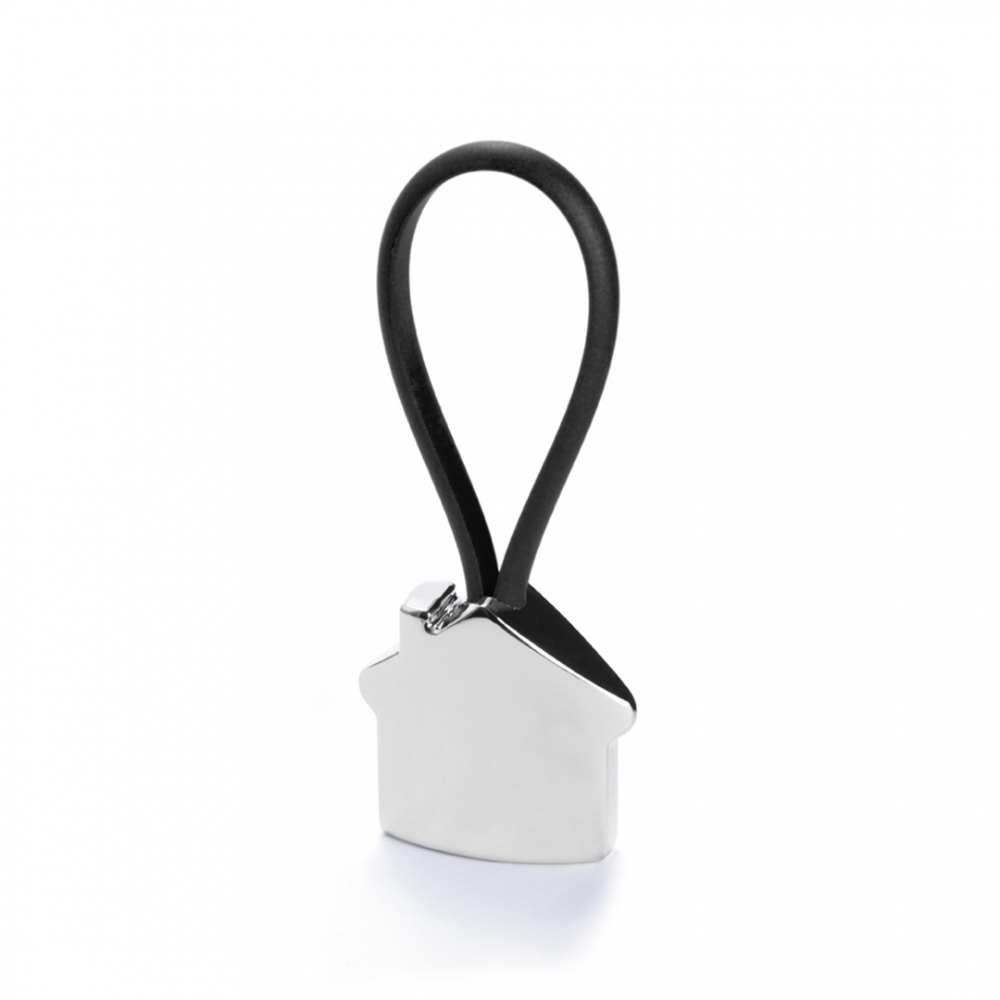 Artikel-Nr: KTO14610002000Metall-Schlüsselanhänger mit elegantem Haus-Design in 3D. Mit Gummiband in verschiedenen lebendigen Farben für die Befestigung der Schlüssel.