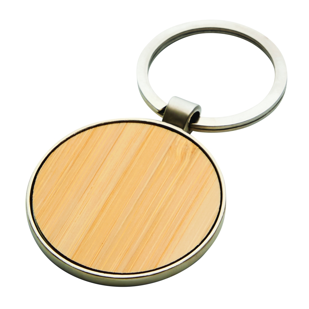 Artikel-Nr: INP56-0407868Schlüsselanhänger CIRCLE: Metall-Kreis mit Bambus-Einsatz, mit Schlüsselring