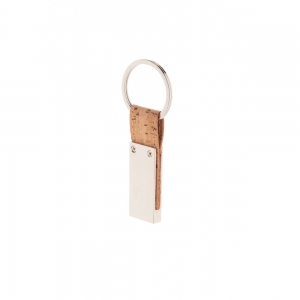 Artikel-Nr: AND806993Rechteckiger Schlüsselanhänger aus Metall mit Riemen aus Naturkork und PU-Leder. In Kraftpapierbox.