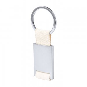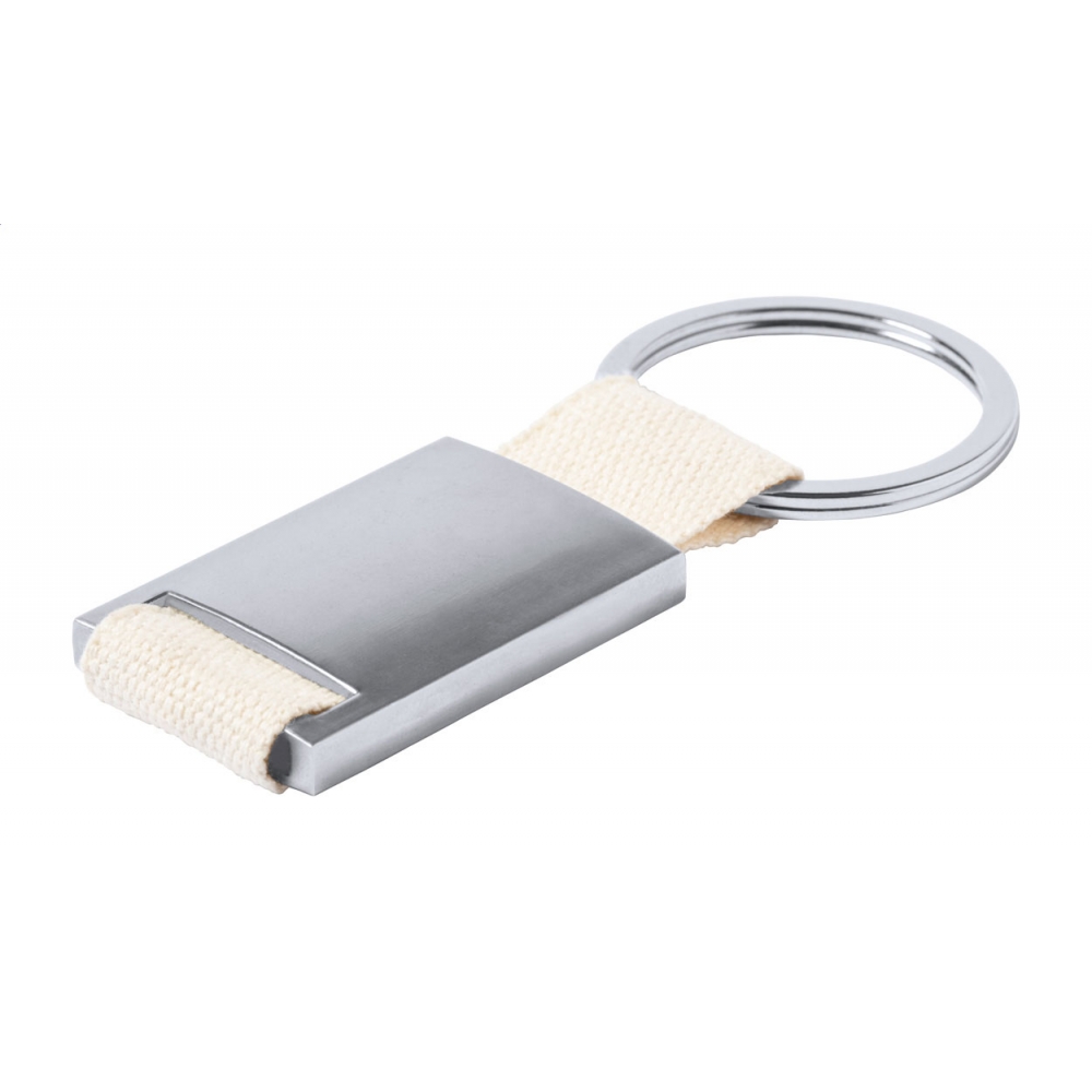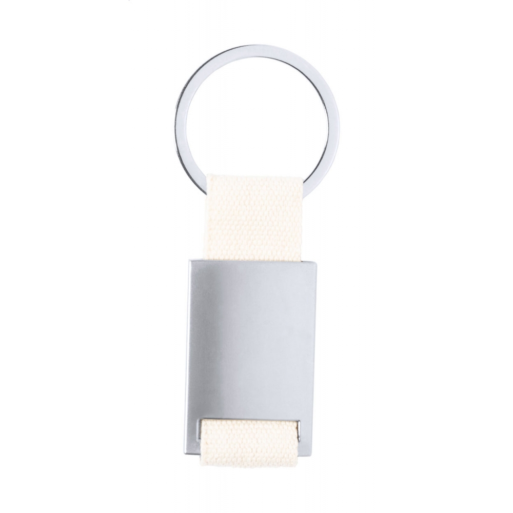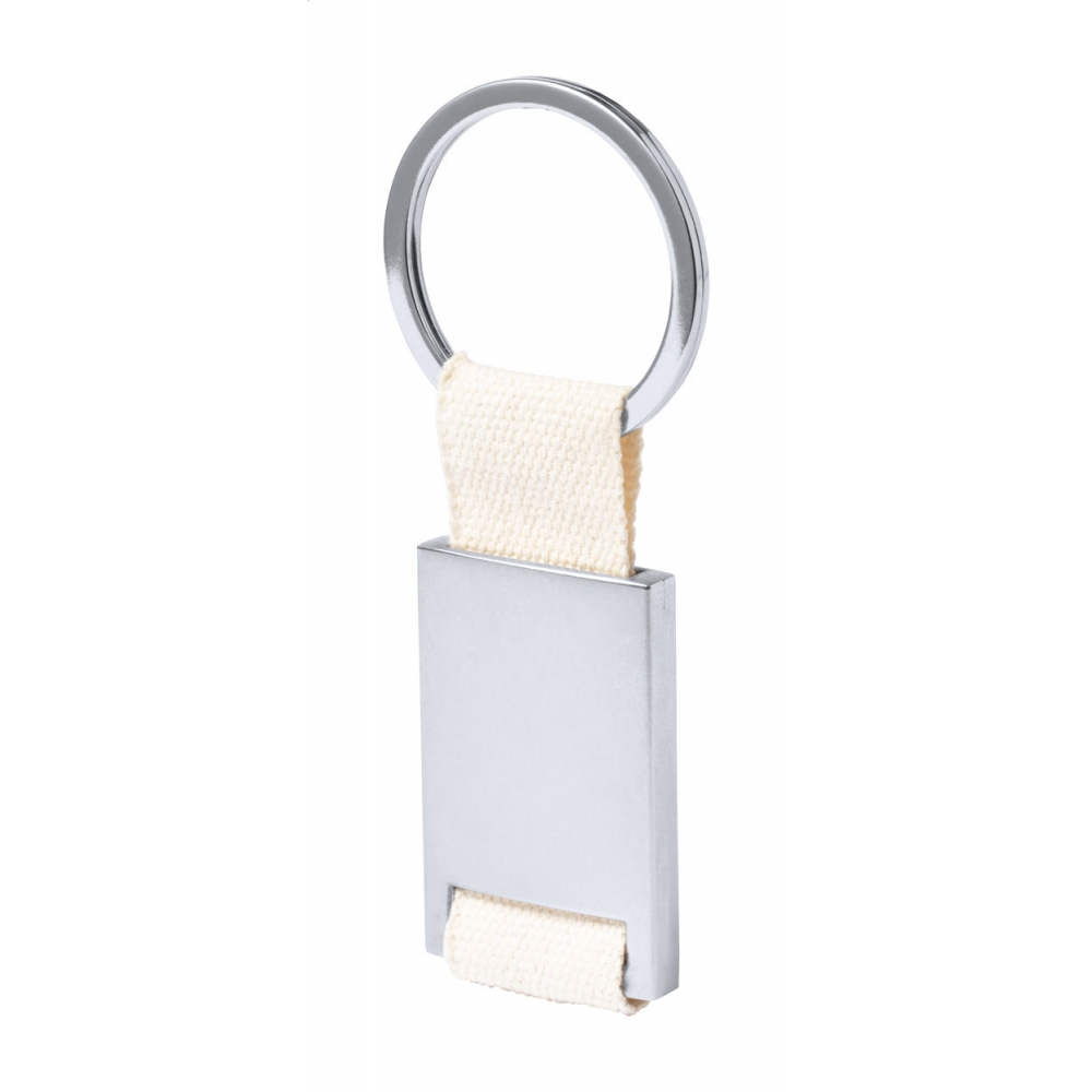 Artikel-Nr: AND722670Rechteckiger Schlüsselanhänger aus Metall mit Baumwollband und Metallring.