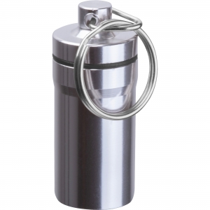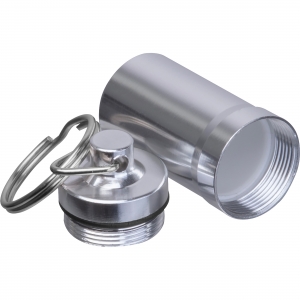 Artikel-Nr: MCM9535907Schlüsselanhänger Döschen mit Edelstahl Außenseite und Kunststoff Innenraum. Ideal zur sicheren Aufbewahrung kleiner Dinge unterwegs. Ihre Werbung gravien wir auf das Döschen.