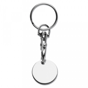 Artikel-Nr: ART99791N0005Metall Einkaufswagenchip mit Karabiner am Schlüsselanhänger. Einfach am Schlüssel zu befestigen. Passt in Wagen mit € 0,50 und € 1,00.