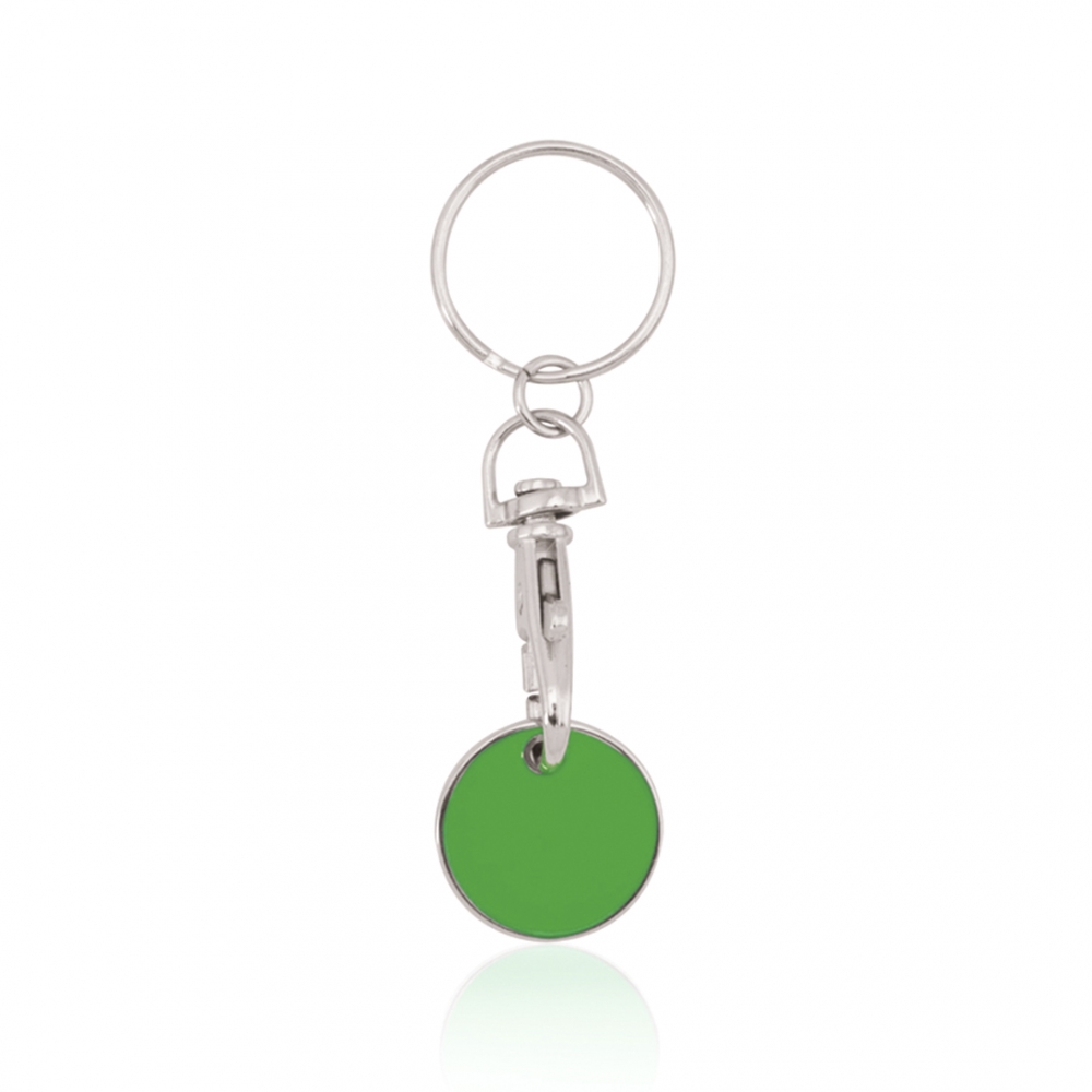 Artikel-Nr: KTO13298004000Schlüsselanhänger aus Metall mit fröhlichem Design in verschiedenen Farben. Mit abnehmbarer Münze und Befestigungskarabiner.