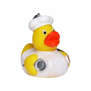 Artikel-Nr: GUT31021Jeder Feinschmecker, jeder Genießer, jedes Leckermaul wird begeistert sein von den Kochkünsten unseres Enten-Kochs! Mit seinem Kochlöffel und seiner Bratpfanne kann er jedes noch so leckere Menü zubereiten, Ihnen wird das Wasser im Mund zusammenlaufen! Und für unterwegs ist diese Ente mit einem Schlüsselring ausgestattet – Ihr Essen sollten Sie aber lieber in eine Lunchbox packen.