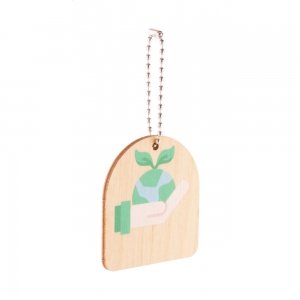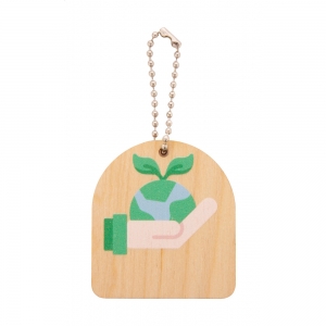 Artikel-Nr: AND716563-CSchlüsselanhänger aus Birkensperrholz mit Metallschlüsselring und Umweltschutzmotiv.