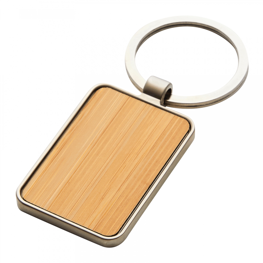 Artikel-Nr: INP56-0407869Schlüsselanhänger FIELD: Metall-Rechteck mit Bambus-Einsatz, mit Schlüsselring