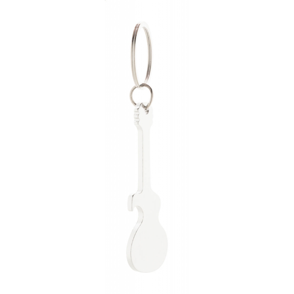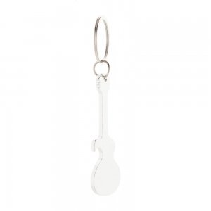 Aluminium-Schlüsselanhänger in Gitarrenform mit Flaschenöffner-Funktion.
