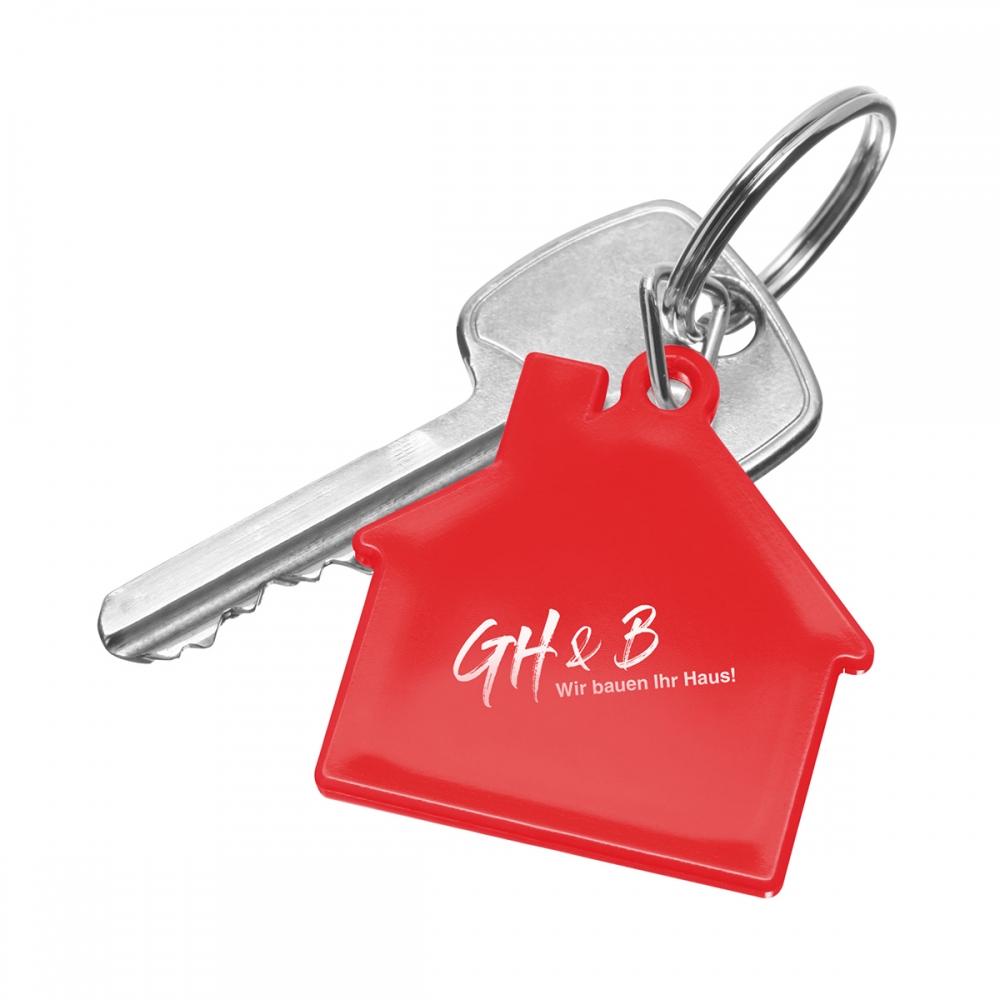 Artikel-Nr: HLA7313-3Schlüsselanhänger "Haus" mit Schlüsselring. Farbkombinationen möglich. Druckkosten pro Position