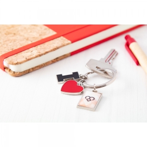 Artikel-Nr: AND873030Metall-Schlüsselanhänger mit 3 Anhängern: "I", Herz und Rechteck. Einzeln in schwarzer Geschenkbox.