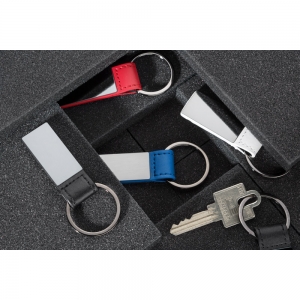 Artikel-Nr: ARD17564-03Eleganter doppelseitiger Schlüsselanhänger aus lederähnlichem PU-Material und graphitfarbenem Metall. Wir gravieren Ihr Logo auf die Metallplatte.