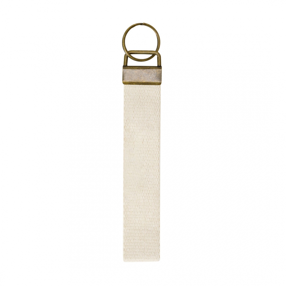Artikel-Nr: KTO22187013000Klassischer Schlüsselanhänger mit Polyesterband und Metallzubehör in gealtertem Metall.