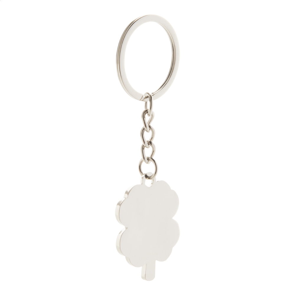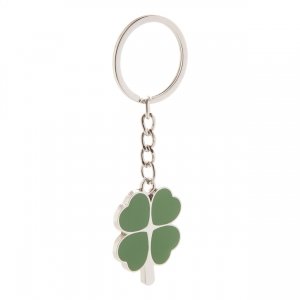 Artikel-Nr: AND873029Metall-Schlüsselanhänger in Form eines vierblättrigen Kleeblattes. Einzeln in schwarzer Geschenkverpackung.