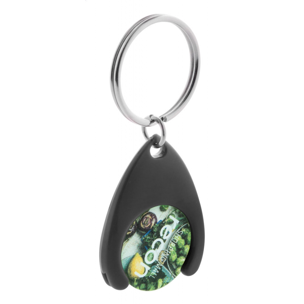 Artikel-Nr: AND800375-10Schlüsselanhänger mit Einkaufswagen-Chip aus Kunststoff mit Metall-Schlüsselring. Chipgröße: ø24×2 mm.