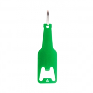 Artikel-Nr: AND808068-07Flaschenöffner aus recyceltem Aluminium in Flaschenform mit Schlüsselanhänger aus Metall.