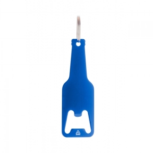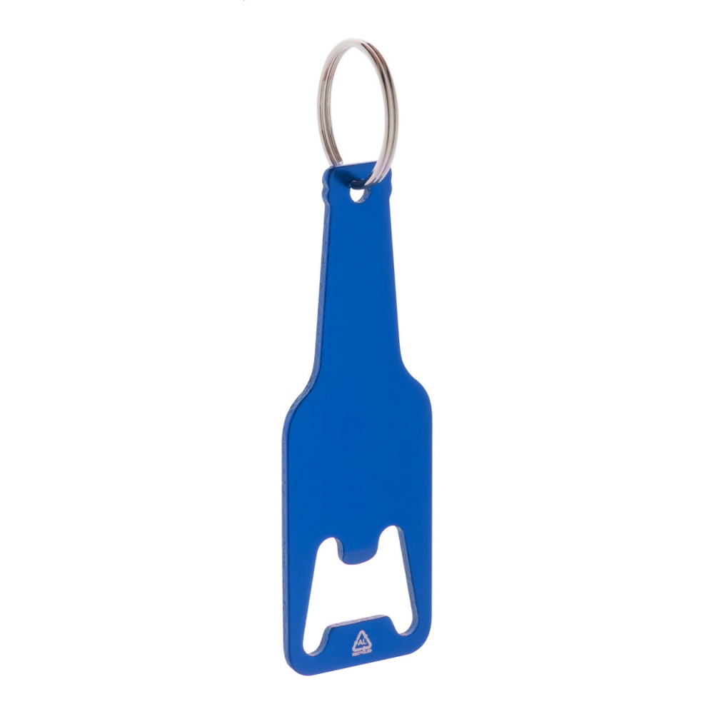Artikel-Nr: AND808068-06Flaschenöffner aus recyceltem Aluminium in Flaschenform mit Schlüsselanhänger aus Metall.