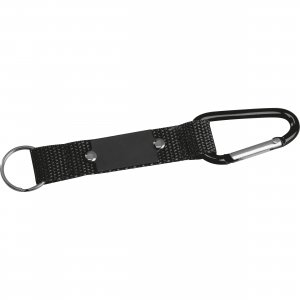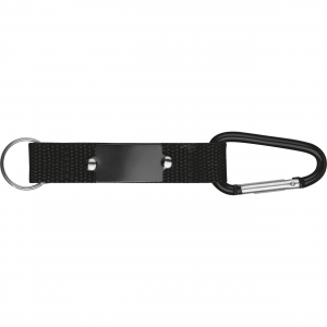Artikel-Nr: MCM9116803Schlüsselanhänger mit Stoffband, Karabinerhaken und einem genieteten Metall-Label für Ihre Lasergravur.