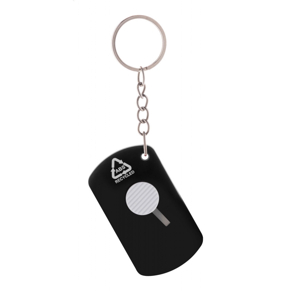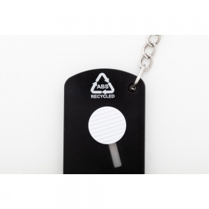 Artikel-Nr: AND809622-10Papiermesser aus recyceltem ABS Kunststoff und Edstahl mit selbseinziehender Klinge und Metallschlüsselring.