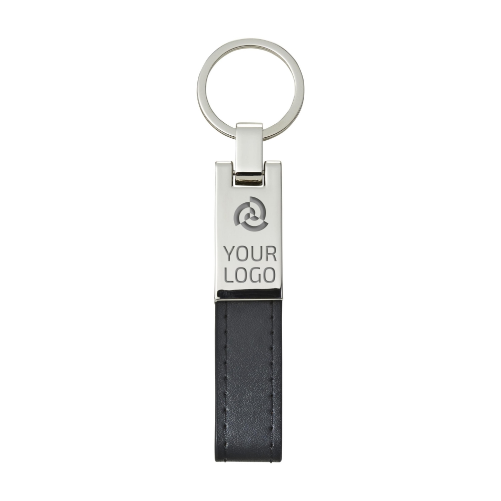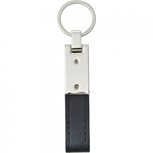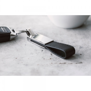 Artikel-Nr: GIV8779001Schlüsselanhänger mit einer silberfarbenen Platte aus Stahl und einer Lasche aus PU Kunststoff. Verpackt in einer schwarzen Geschenkbox.