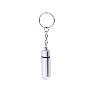 Artikel-Nr: KTO13168000000Diskret gestalteter Pillenetui-Schlüsselanhänger mit glänzendem Aluminiumgehäuse und Schraubverschluss.