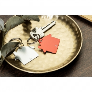 Artikel-Nr: AND800104-21Schlüsselanhänger aus recyceltem Aluminium in Hausform mit Metallring.