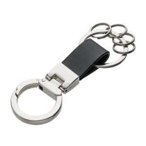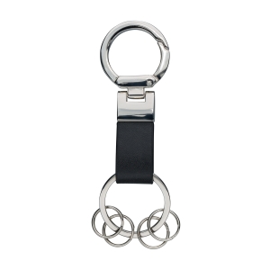 Artikel-Nr: RFS10346Schlüsselanhänger aus Kunstleder: Edle Anmutung durch ansprechende Kombination der Materialkomponenten und hochwertige Geschenkverpackung, inklusive vier kleiner, am Karabiner befestigter Schlüsselringe.