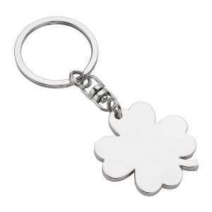 Artikel-Nr: RFS10193-SGlücksklee für Glückliche und solche, die es werden wollen. Schöner Schlüsselanhänger aus glänzendem Metall mit stabilem Schlüsselring. Veredelbar ist das vierblättrige Kleeblatt aus Metall mit einer edlen und dezenten Lasergravur.