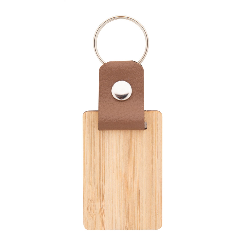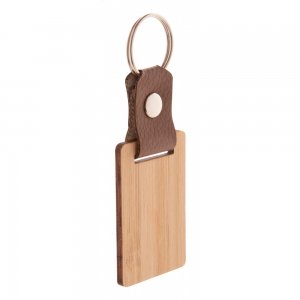 Artikel-Nr: AND718640-ASchlüsselanhänger aus Bambussperrholz und Kunstleder mit Metallschlüsselring.