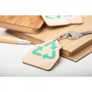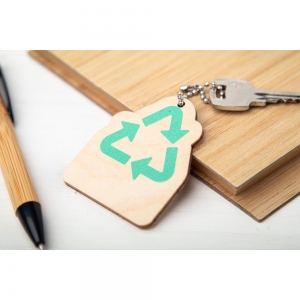 Artikel-Nr: AND716563-DSchlüsselanhänger aus Birkensperrholz mit Metallschlüsselring und Umweltschutzmotiv.