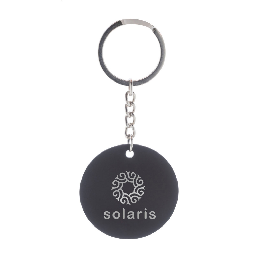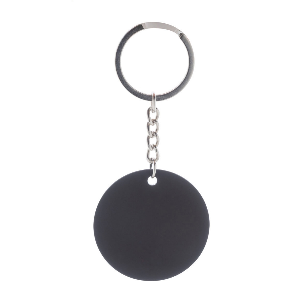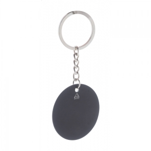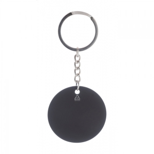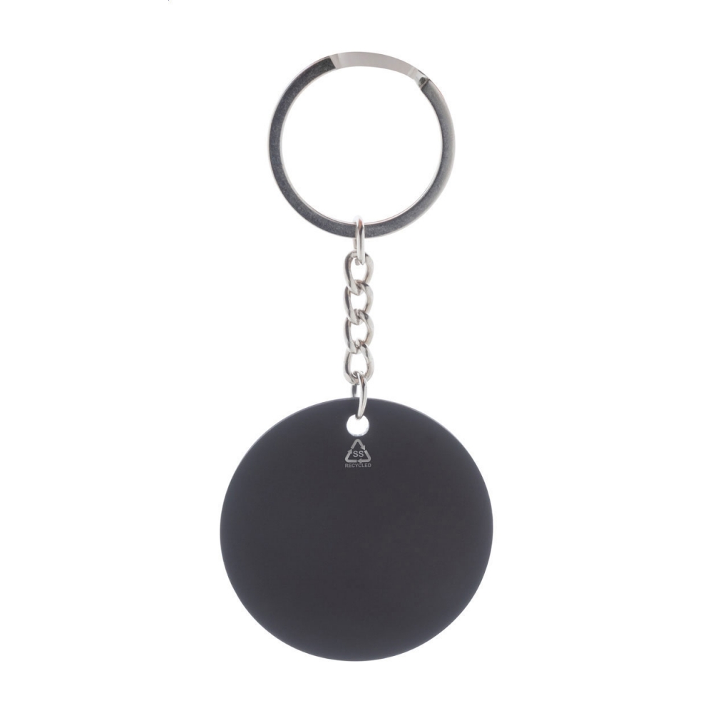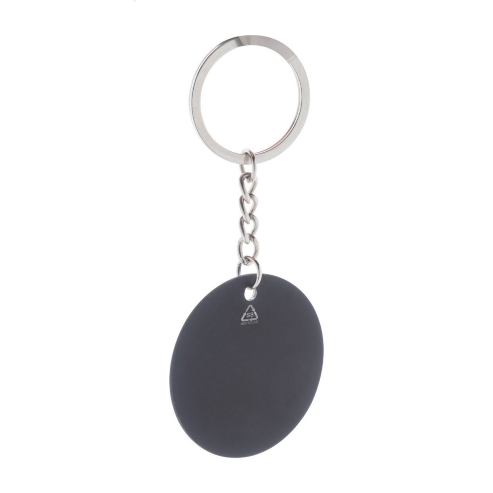 Artikel-Nr: AND808270-10Runder Schlüsselanhänger aus recyceltem Edelstahl mit gummierter Oberfläche undspezieller Beschichtung für Spiegelgravuren.