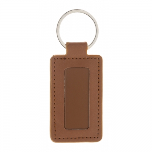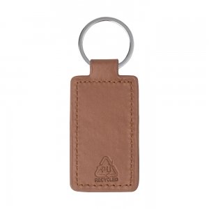Artikel-Nr: AND800196-09Rechteckiger Schlüsselanhänger aus recyceltem PU-Leder mit Metallring und Logoplatte aus Edelstahl mit gummierter Oberfläche. Mit Spezialbeschichtung für Spiegelgravur.