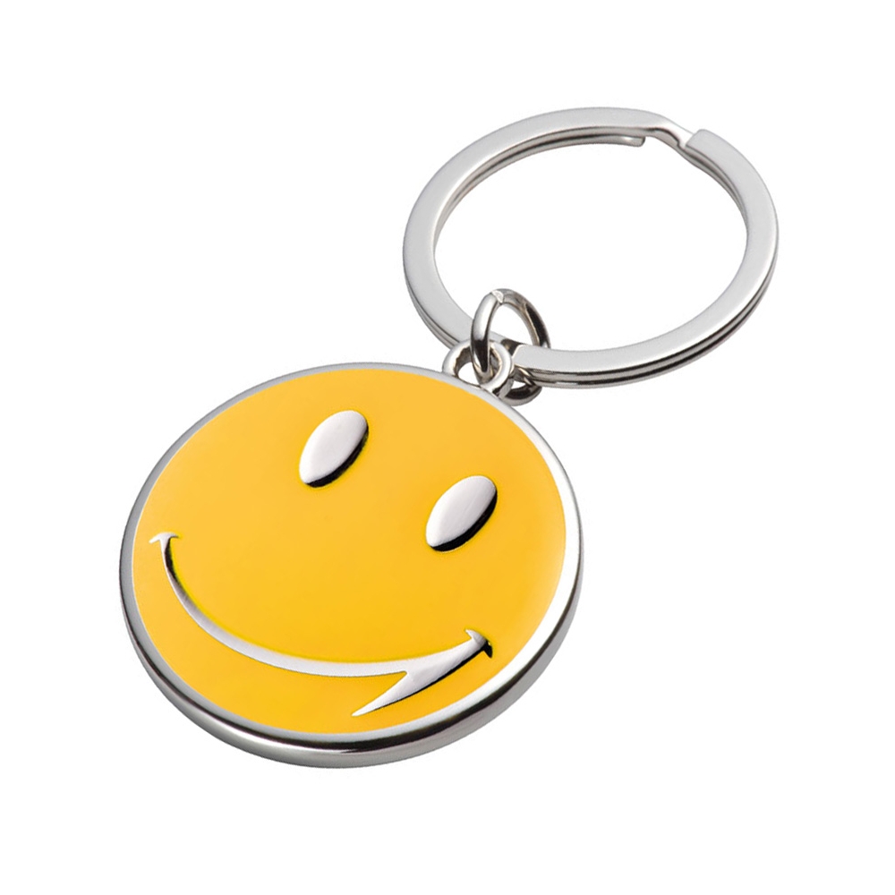 Artikel-Nr: EAG347408Fröhlicher Schlüsselanhänger aus Metall mit einem lächelnden Gesicht. Ihre Werbung bringen wir mittels einer Lasergravur auf der Rückseite an.