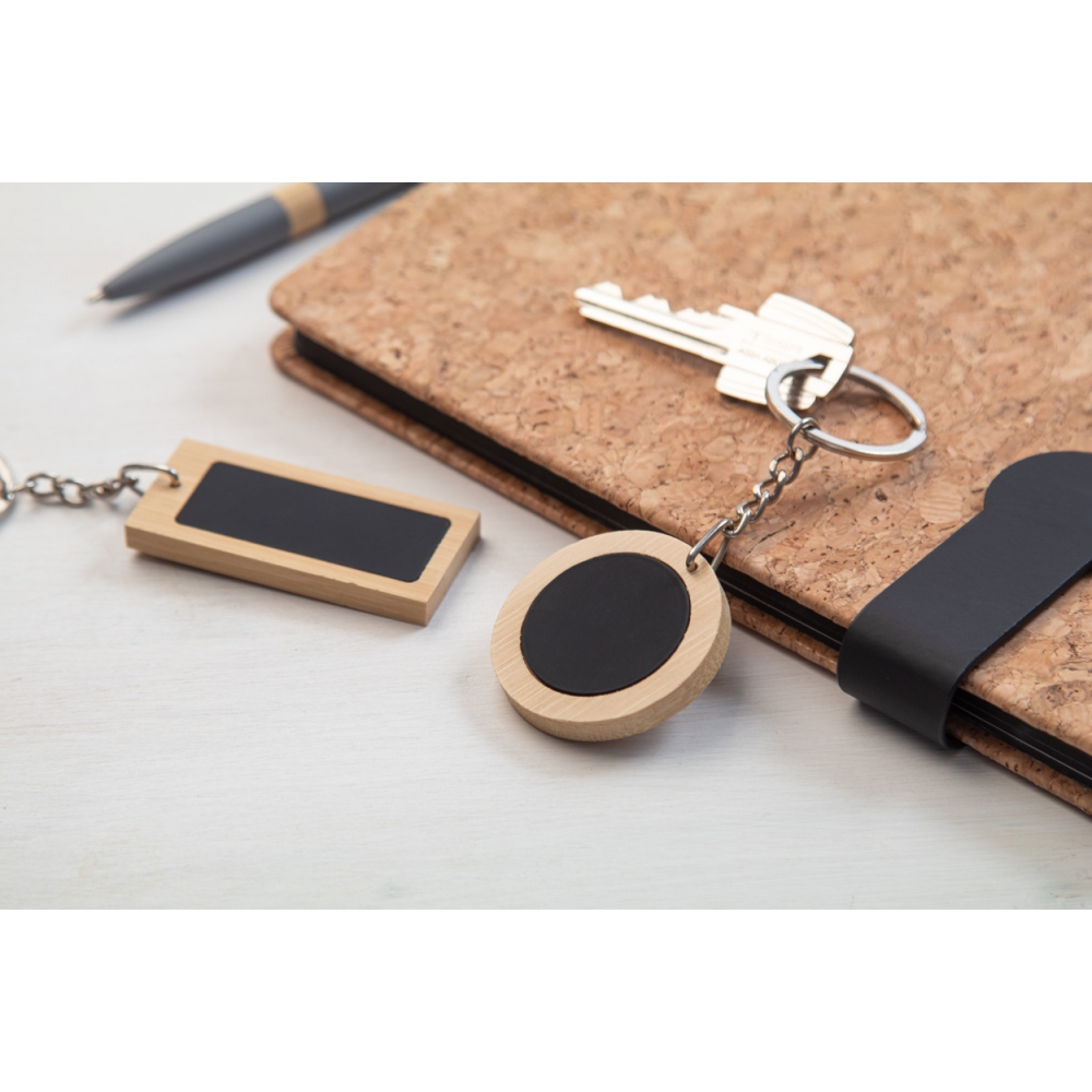 Artikel-Nr: AND809626-BSchlüsselanhänger aus Bambus mit gummiertem Metallplättchen und Metallschlüsselring. Mit Spezialbeschichtung für Spiegelgravuren.