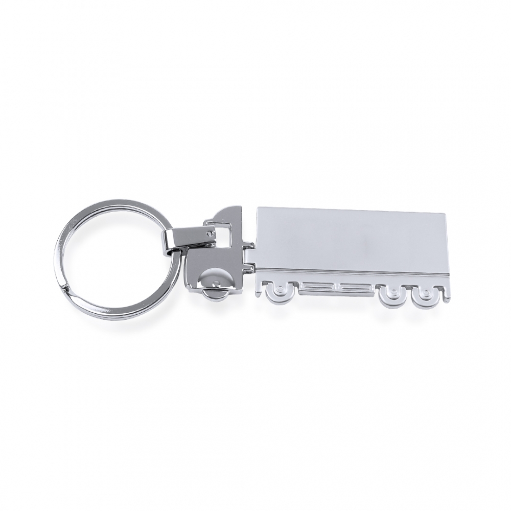 Artikel-Nr: KTO19272000000Schlüsselanhänger aus Metall mit tollem LKW-Design - speziell für den Laserdruck entwickelt. Mit Kabine in glänzender und Anhänger in matter Ausführung.