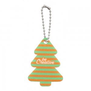 Individueller Weihnachts-Schlüsselanhänger aus RPET-Filz mit Metallkette und Vollfarbdruck. Der Preis ist inkl. einseitigem Sublimationsdruck. Mindestmenge: 100 Stk.