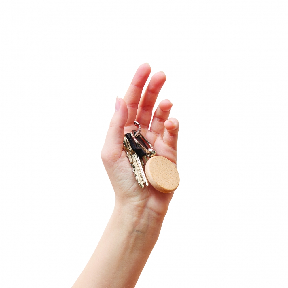 Artikel-Nr: INP56-0407859Schlüsselanhänger WOODS: Holz-Kreis, mit Schlüsselring