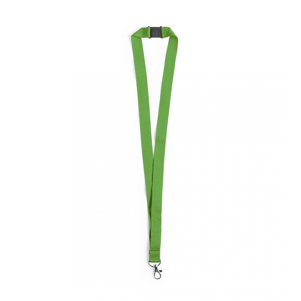 Lanyard aus robustem Polyester, mit Sicherheitsverschluss im Nacken und Metallkarabiner. Erhältlich in einer Vielzahl von lebendigen Farben.