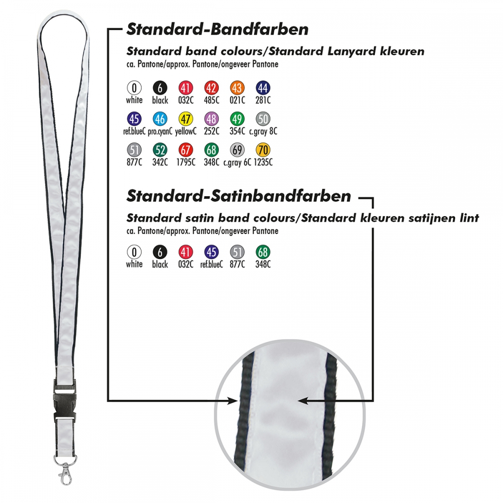 Artikel-Nr: HLA8126B_25-RBC-RBCSchlüsselband / Lanyard "Satin" flachgewebtes Polyester mit Satinband mit Karabinerhaken und Schnappverschluss. Keine Lagerware, auftragsbezogene Fertigung. Andere Größen, Ausführungen und Farben auf Anfrage.
