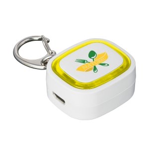 Artikel-Nr: RFS_S_80509-WE-YWDas Schlüssellicht mit aufladbarer Lithium-Polymer-Batterie hat neun verbaute Hochleistungs-LEDs mit 0,2 Watt und einer Leuchtstärke von 6000K. Der umlaufende Farbring an der Werbefläche wird per LED hinterleuchtet.
