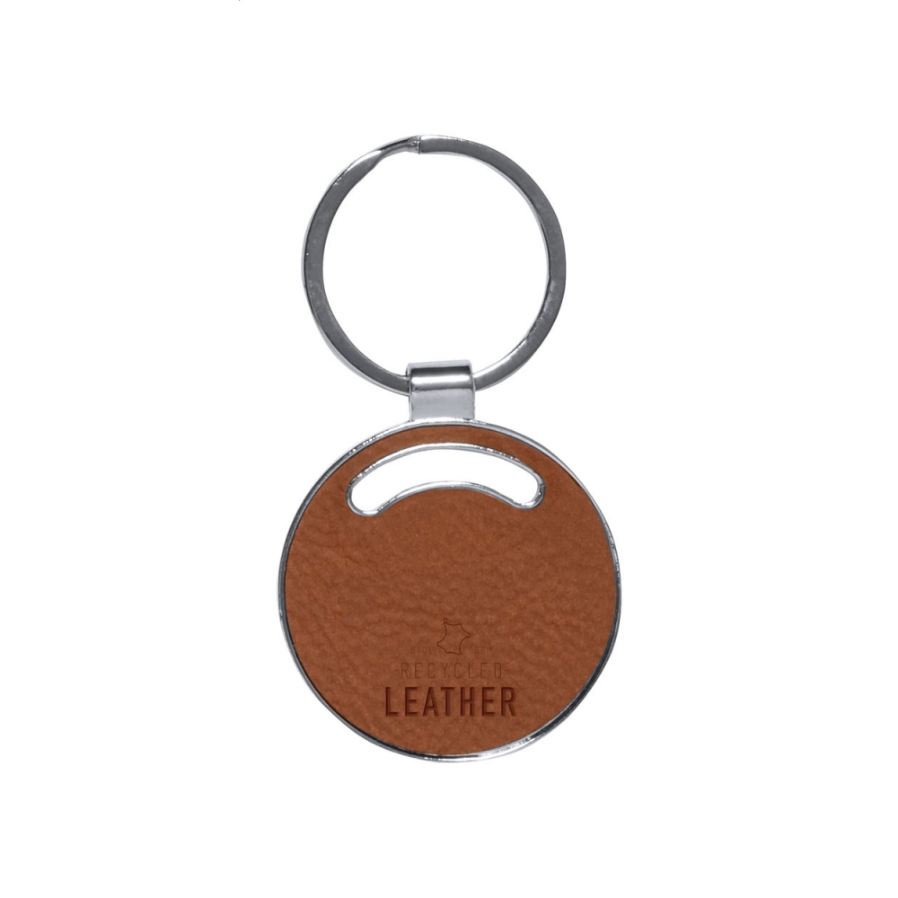 Artikel-Nr: AND733413-CSchlüsselanhänger aus Metall mit recyceltem Leder überzogen.