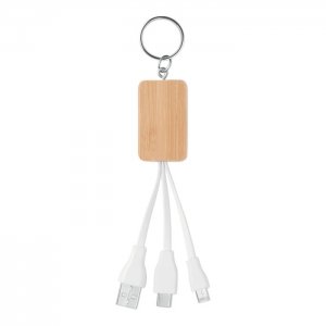 Artikel-Nr: OCBMO9888-40Schlüsselring mit Anhänger aus Bambus und Ladekabel USB-A, Mikro-B (2-in-1) und Typ-C. Bambus ist ein natürliches Produkt, es kann daher zu leichten Abweichungen in Farbe, Dekor und Maßen kommen..