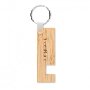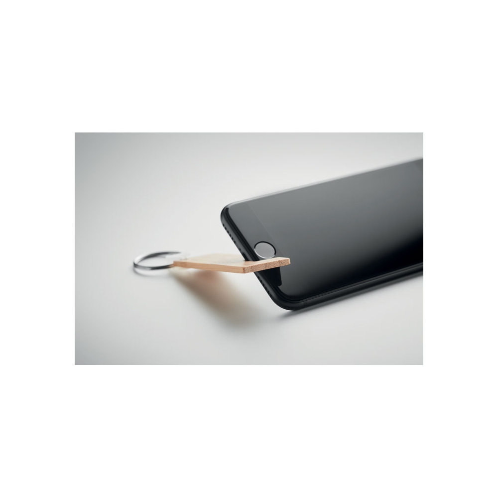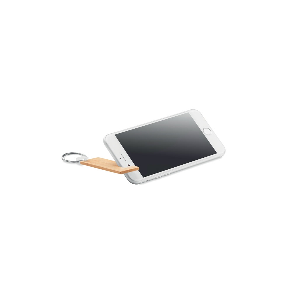 Artikel-Nr: OCBMO6596-40Schlüsselring mit Smartphone-Halter. Bambus. Ein schöner Bambus-Schlüsselanhänger, der auch als Smartphone-Halter verwendet werden kann. So tragen Sie immer einen praktischen Telefonständer bei sich. Da Bambus ein natürliches Material ist, können Farbton und Maße pro Artikel variieren. Dies kann zu Abweichungen im Ergebnis der Veredlung führen. FSC®-certified | FSC 100%, N5.7, FSC-C213206