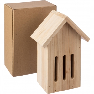 Artikel-Nr: GIV1105801011Schmetterlingshaus aus Kiefernholz mit drei Öffnungen auf der Vorderseite. Es hat einen Metallhaken zum Aufhängen, um das Haus an der Wand zu befestigen. Einzeln verpackt in einer braunen Kartonschachtel.
