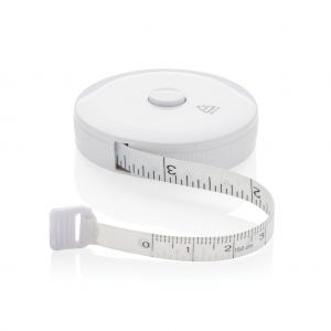 Artikel-Nr: XND1100231,5m/60inch Schneidermaßband aus recyceltem Kunststoff mit Rücklaufdruckknopf, für Fitness und Mode. Das Gehäuse ist aus RCS-zertifiziert recyceltem ABS-Kunststoff und Glasfaser hergestellt. Gesamter recycelter Inhalt: 64%, bezogen auf das Gesamtgewicht des Artikels. Die RCS-Zertifizierung gewährleistet eine vollständig zertifizierte Lieferkette für die recycelten Materialien. Das Band ist 8mm breit und per Knopfdruck einziehbar. Verpackt in FSC®-Mix-Verpackung.